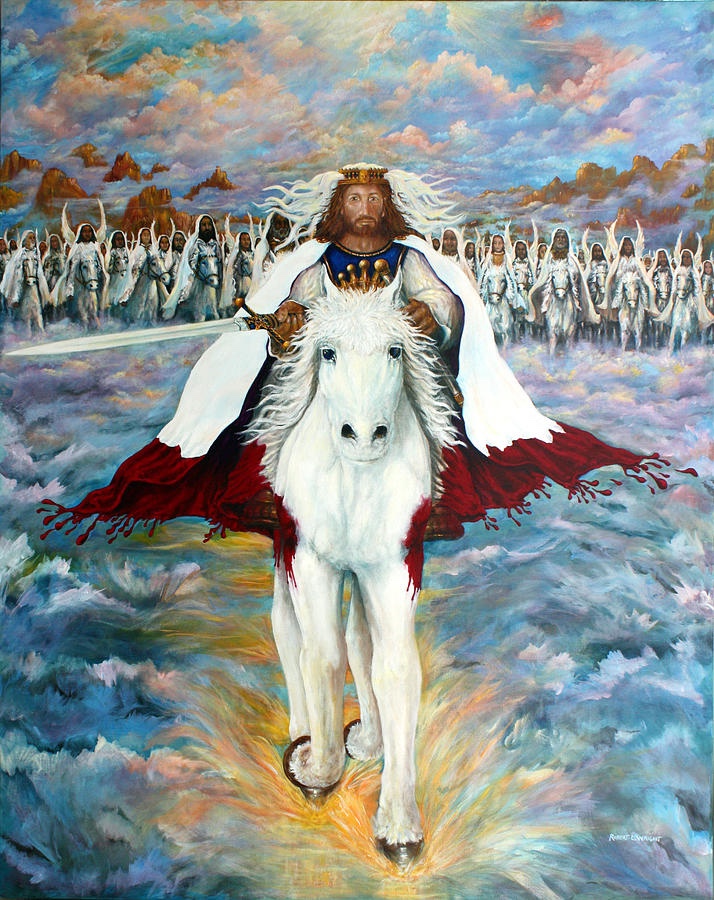 • The armies of heaven followed Him to earth. There are four divisions: the Bride (the Church), Tribulation saints, Old Testament saints, and the holy angels. These armies also ride on white horses, clothed in fine linen, white and clean. They carry no weapons. This army numbers in the millions upon millions. They are privileged to stand with Christ as He comes to execute judgment upon all the ungodly. Armageddon is their destination as they follow Christ. The time of reaping has arrived.